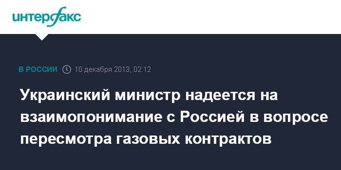 Украинский министр надеется на взаимопонимание с Россией в вопросе пересмотра газовых контрактов