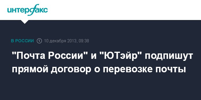Это один из первых в практике "Почты России" прямых договоров с авиакомпанией на авиаперевозку почты. Согласно документу, "ЮТэйр" будет получать гарантированные объемы почтовых перевозок в течение года.