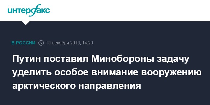 "В будущем году надо закончить формирование новых соединений и воинских частей, входящих в перспективный боевой состав вооруженных сил. При этом особое внимание прошу уделить развертыванию инфраструктуры и воинских частей на Арктическом направлении", - заявил Путин, выступая на расширенном заседании коллегии Минобороны.