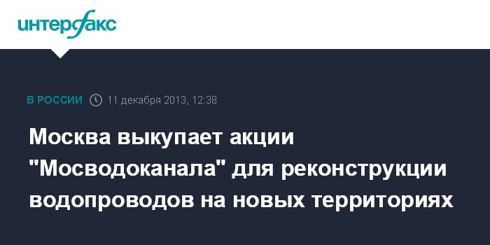 Москва выкупает акции "Мосводоканала" для реконструкции водопроводов на новых территориях