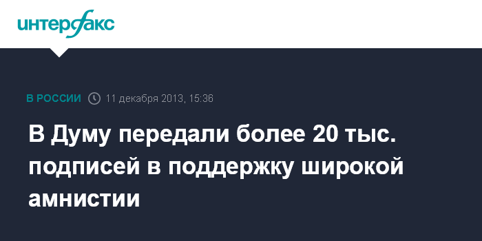В Думу передали более 20 тыс. подписей в поддержку широкой амнистии