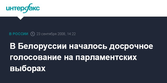Москва. 23 сентября. INTERFAX.RU - Досрочное голосование по выборам депутатов Палаты представителей Национального собрания Белоруссии началось в республике во вторник. "В 10 часов (11:00 МСК) в республике открылось более 6 тыс. 400 избирательных участков", - заявили агентству "Интерфакс" в Центральной избирательной комиссии.