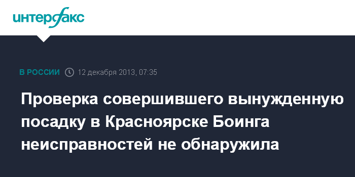 "Первичная проверка "Боинга-737", совершавшего рейс №207 "Красноярск – Норильск", сотрудниками службы безопасности авиакомпании показала, что никакой разгерметизации салона не было. Самолет исправен", - сообщила И.Воробьева.