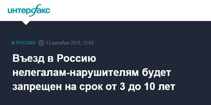 "Для тех кто нарушает правила пребывания, въезд в Россию будет запрещен в зависимости от тяжести нарушения на срок от 3 до 10 лет", - сказал В. Путин, оглашая послание Федеральному собранию.