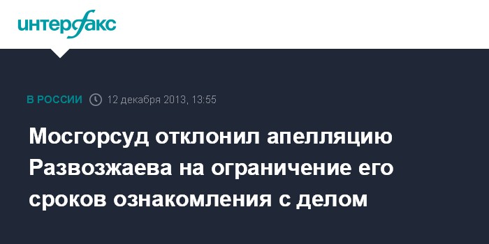 Москва. 12 декабря. INTERFAX.RU - Мосгорсуд признал законным ограничение сроков ознакомления с материалами уголовного дела для обвиняемого в подготовке массовых беспорядков Леонида Развозжаева и его защитников.