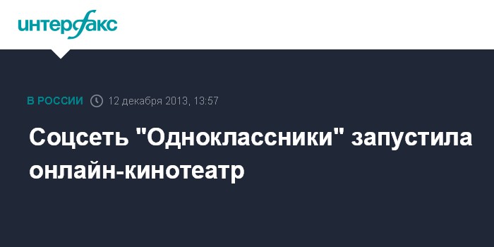 Москва. 12 декабря. INTERFAX.RU - Соцсеть "Одноклассники" запустила полноценный онлайн-кинотеатр.