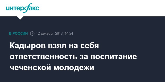 Москва. 12 декабря. INTERFAX.RU - Региональные власти должны отвечать за воспитательную работу среди молодежи, заявил глава Чечни Рамзан Кадыров.
