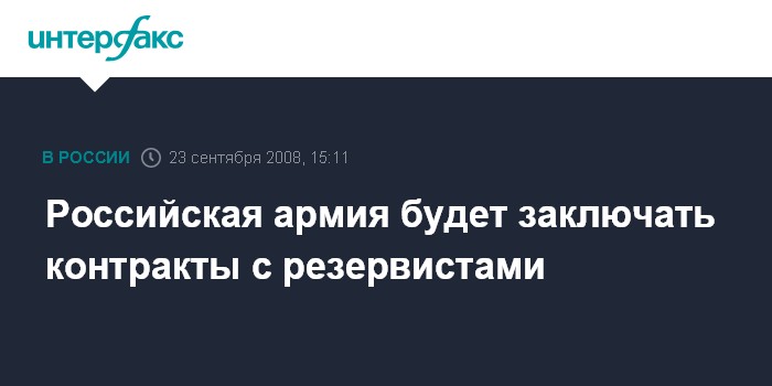 Москва. 23 сентября. INTERFAX.RU - В России утверждена концепция создания новой системы подготовки и накопления мобилизационных людских ресурсов армии, которой предусматривается заключать контракт с гражданами, пребывающими в резерве.