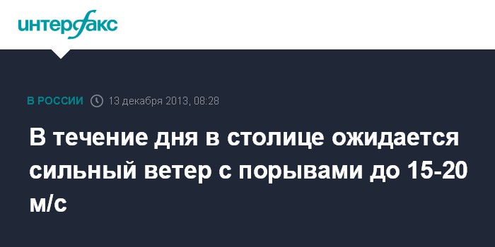 В течение дня в столице ожидается сильный ветер с порывами до 15-20 м/с