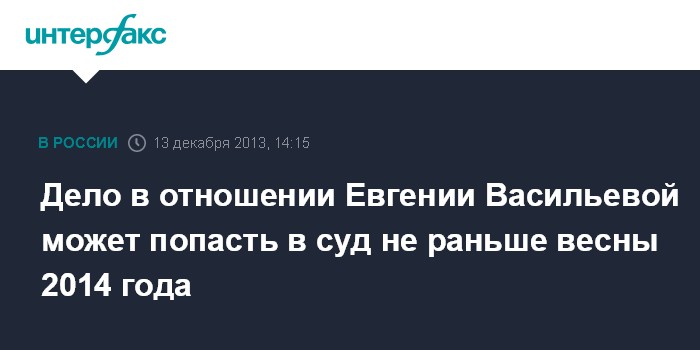 Дело в отношении Евгении Васильевой может попасть в суд не раньше весны 2014 года