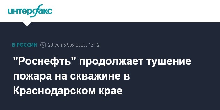 Москва/Краснодар. 23 сентября. INTERFAX.RU - "РН-Краснодарнефтегаз" (дочерняя структура НК "Роснефть") продолжает тушение пожара на скважине в Краснодарском крае.