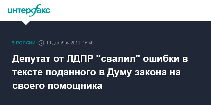 Депутат от ЛДПР "свалил" ошибки в тексте поданного в Думу закона на своего помощника