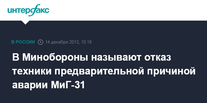 В Минобороны называют отказ техники предварительной причиной аварии МиГ-31
