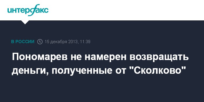 Пономарев не намерен возвращать деньги, полученные от "Сколково"
