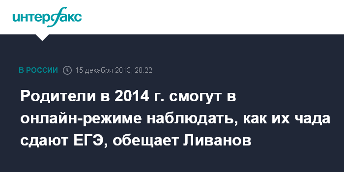 Родители в 2014 г. смогут в онлайн-режиме наблюдать, как их чада сдают ЕГЭ, обещает Ливанов