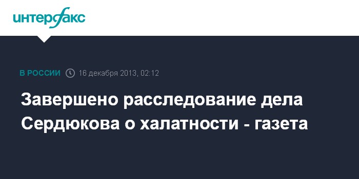 Москва. 16 декабря. INTERFAX.RU - Завершено расследование уголовного дела о халатности, возбужденного в отношении бывшего министра обороны Анатолия Сердюкова, сообщает газета "Коммерсант".
