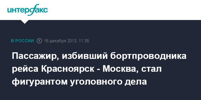 Пассажир, избивший бортпроводника рейса Красноярск - Москва, стал фигурантом уголовного дела