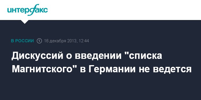 Дискуссий о введении "списка Магнитского" в Германии не ведется