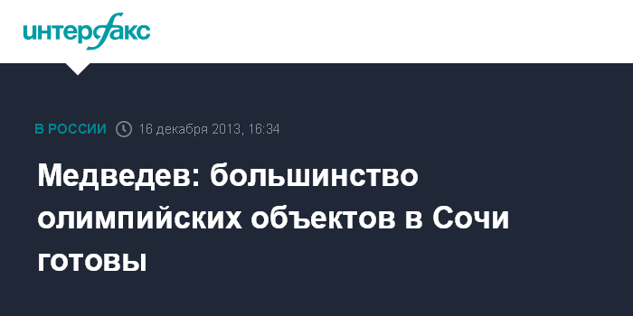 Сочи. 16 декабря. INTERFAX.RU - Большинство олимпийских объектов в Сочи готовы к проведению Игр, заявил премьер-министр РФ Дмитрий Медведев.