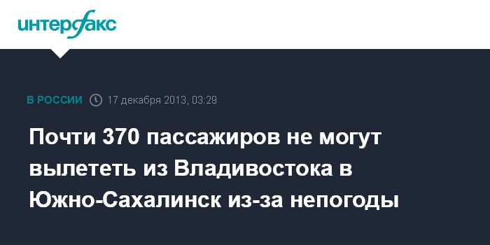 Почти 370 пассажиров не могут вылететь из Владивостока в Южно-Сахалинск из-за непогоды