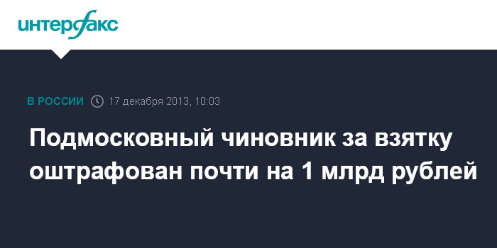 Подмосковный чиновник за взятку оштрафован почти на 1 млрд рублей