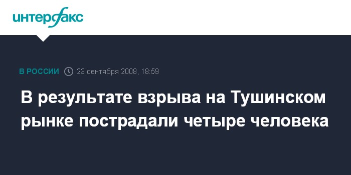 Москва. 23 сентября. INTERFAX.RU - Четыре человека пострадали в результате взрыва на Тушинском рынке во вторник вечером, сообщил "Интерфаксу" источник в правоохранительных органах.