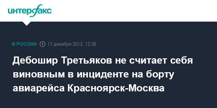 При этом он заявил, что не считает себя виновным в инциденте. "Произошел межличностный конфликт между мной и бортпроводником, возникший на почве пользования туалетом в передней части салона", - сказал Третьяков.