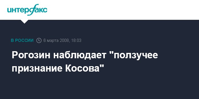Москва. 6 марта. INTERFAX.RU - Москва призывают НАТО не превышать мандат своих сил в Косово (KFOR) и не выступать только на стороне косовских албанцев. Об этом заявил постпред РФ при НАТО Дмитрий Рогозин в интервью телеканалу "Вести 24".