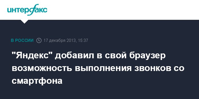 Москва. 17 декабря. INTERFAX.RU - "Яндекс" выпустил новую версию своего браузера, главным новшеством которой является возможность звонков со смартфонов, говорится в сообщении компании.