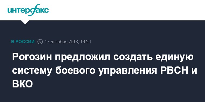 Москва. 17 декабря. INTERFAX.RU - Военно-промышленная комиссия в начале 2014 года подготовит и представит президенту РФ предложения по созданию системы боевого управления Ракетными войсками стратегического назначения и Войсками военно-космической обороны, сообщил вице-премьер Дмитрий Рогозин.