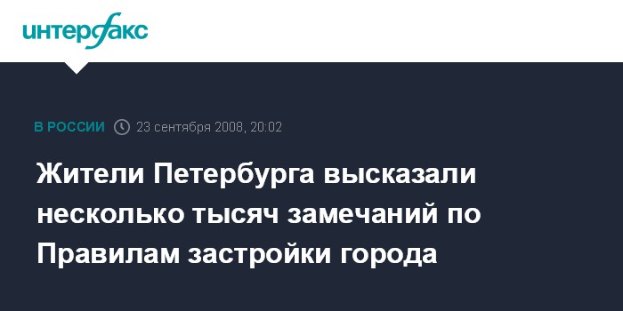 Москва. 23 сентября. INTERFAX.RU - Авторы проекта правил землепользования и застройки Петербурга ожидают от жителей города несколько тысяч замечаний и предложений по итогам завершающихся в Северной столице во вторник общественных слушаний документа.