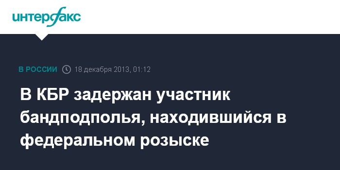 Ростов-на-Дону. 18 декабря. ИНТЕРФАКС-ЮГ - Вооруженный участник бандподполья, находившийся в федеральном розыске, задержан на окраине города Тырныауз, сообщили агентству "Интерфакс-Юг" в правоохранительных органах Кабардино-Балкарии.