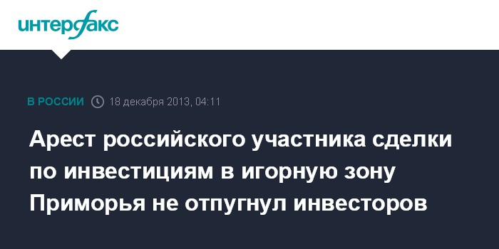 Арест российского участника сделки по инвестициям в игорную зону Приморья не отпугнул инвесторов