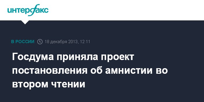 Москва. 18 декабря. INTERFAX.RU - Госдума приняла во втором чтении президентский проект постановления об объявлении амнистию в связи с 20-летием принятия Конституции РФ.