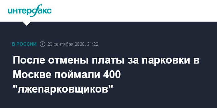 Москва. 23 сентября. INTERFAX.RU - После отмены с 10 сентября платы за городские парковки в Москве на них милиция выловила 400 "лжепарковщиков", сообщил первый заместитель мэра в правительстве Москвы Петр Бирюков.