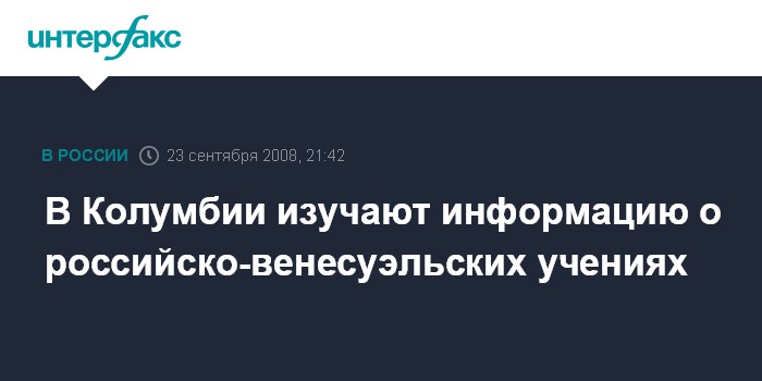 Москва. 23 сентября. INTERFAX.RU - Правительство Колумбии тщательно изучает информацию о совместных учениях, которые проведут в ноябре российские боевые корабли и ВМС Венесуэлы, заявил министр обороны Колумбии Хуан Мануэль Сантос во вторник во время выступления по местному радио.