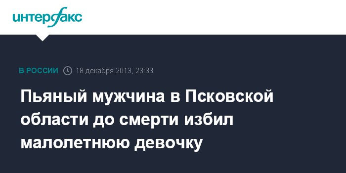 Пьяный мужчина в Псковской области до смерти избил малолетнюю девочку