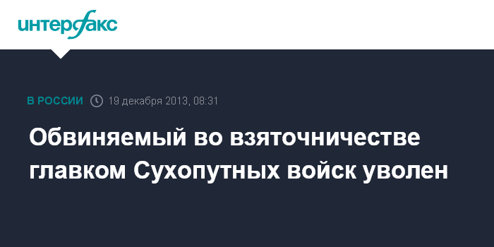 Обвиняемый во взяточничестве главком Сухопутных войск уволен