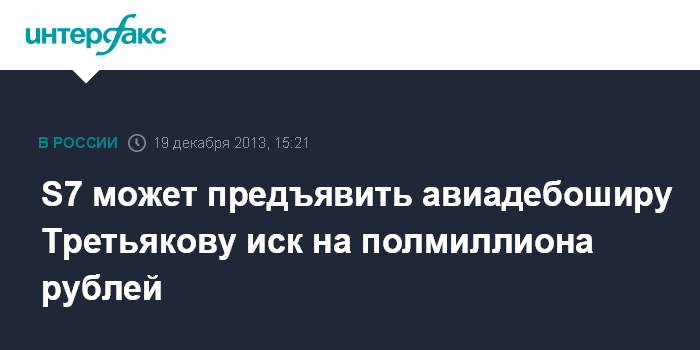 S7 может предъявить авиадебоширу Третьякову иск на полмиллиона рублей