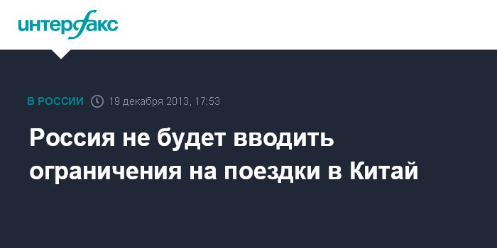 Москва. 19 декабря. INTERFAX.RU - Зафиксированный накануне в Китае первый случай заражения человека птичьим гриппом не повлияет на ограничение поездок в страну, а также на торговлю с приграничными территориями, сообщает Роспотребнадзор.