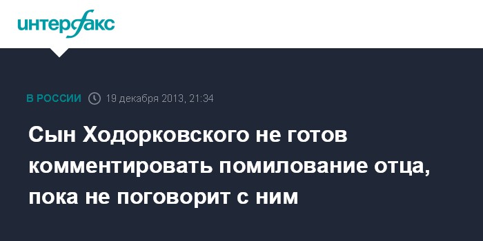 "Я не могу комментировать (новость - ИФ) до тех пор, пока не поговорю с отцом", - написал он в четверг в своем "твиттере". В то же время Ходорковский, который живет в США, назвал эту новость "счастливой".