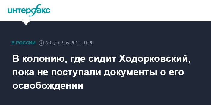 В колонию, где сидит Ходорковский, пока не поступали документы о его освобождении