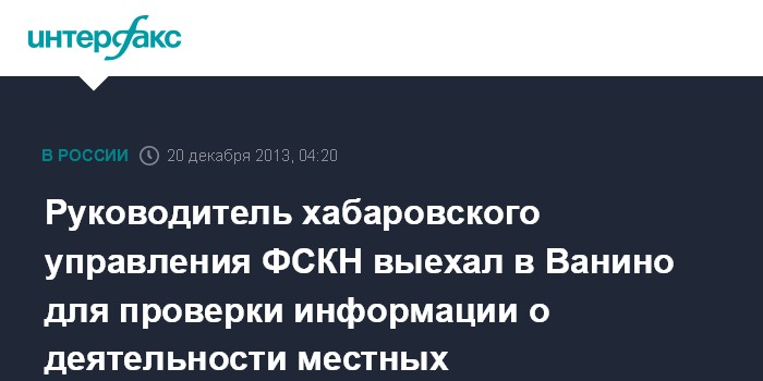 "В Ванино из Хабаровска сегодня рано утром выехала бригада наших специалистов во главе с начальником управления (генерал-лейтенантом полиции Николаем Хроминым - ИФ). Туда же выехали представители МВД. Проверка информации, озвученной в ходе пресс-конференции президента, будет проводиться совместно с ними", - сообщил агентству "Интерфакс-Дальний Восток" в пятницу руководитель пресс-группы управления ФСКН по региону Александр Дзюня.