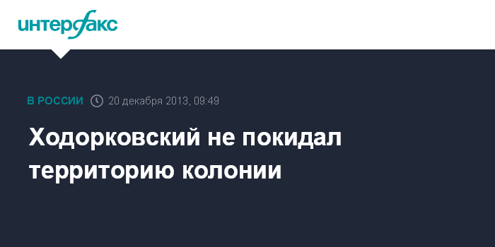"Он (Ходорковский. - ИФ) находится там и территорию исправительного учреждения не покидал", - сказал собеседник агентства.