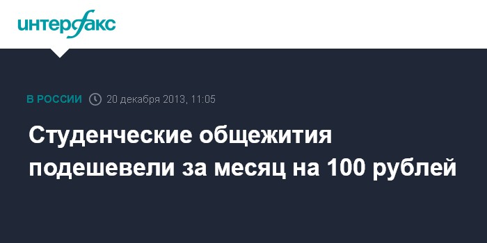 Москва. 20 декабря. INTERFAX.RU - Средняя плата за проживание в общежитиях вузов России для студентов-бюджетников на конец этого года составляет 340 рублей в месяц, сообщили в Министерстве образования и науки РФ (МОН).