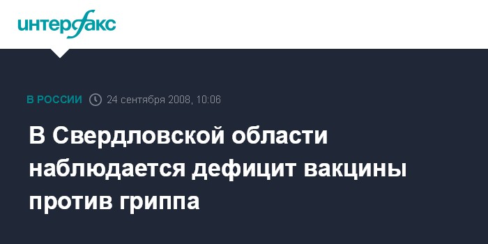 Москва. 24 сентября. INTERFAX.RU - Санитарные врачи Свердловской области отмечают дефицит вакцины против гриппа.