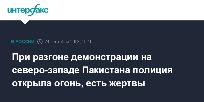 Москва. 24 сентября. INTERFAX.RU - Не менее шести человек погибли в Пакистане во время разгона демонстраций против операций пакистанской армии на северо-западе страны, сообщила пакистанская полиция. Еще десятки человек получили ранения.