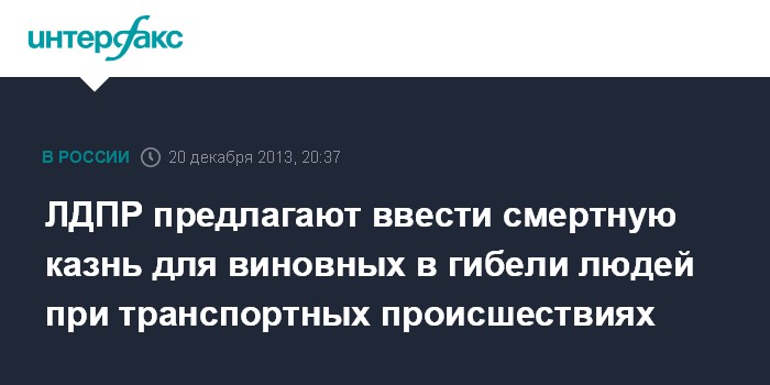 ЛДПР предлагают ввести смертную казнь для виновных в гибели людей при транспортных происшествиях