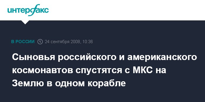 "Такого еще не было в истории космонавтики, чтобы две династии, два сына американского и российского космонавтов спускались вместе в одном корабле", - сказал Перминов, добавив, что с удовольствием работал бы с династиями, если бы сыновья всех космонавтов хотели стать космонавтами.