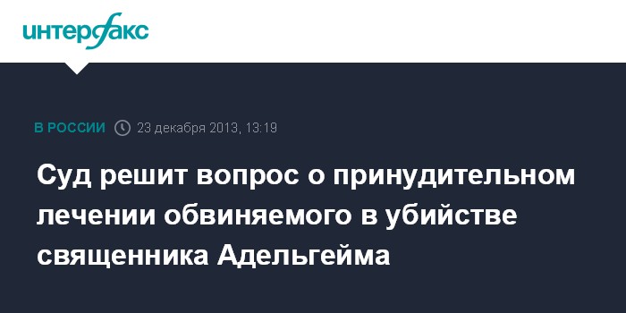 Суд решит вопрос о принудительном лечении обвиняемого в убийстве священника Адельгейма